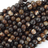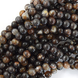 Brown coffee fire agate round beads. This strand is 15" long, about 6mm, 8mm, 10mm in diameter.