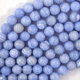 Colored blue lace agate round beads. This strand is 15" long, about 6mm, 8mm, 10mm in diameter.