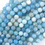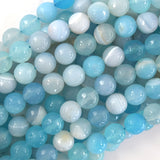 Faceted Sky Blue Stripe Agate Round Beads Gemstone 14.5" Strand 6mm 8mm 10mm