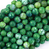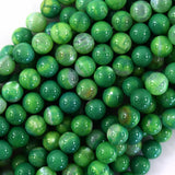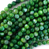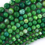 Dark green fire agate round beads. This strand is 15" long, about 6mm, 8mm, 10mm in diameter.