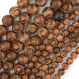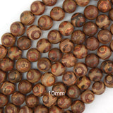 Matte brown Tibetan DZI agate round beads. This strand is 15" long, about 6mm, 8mm, 10mm in diameter.