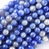 Mystic Titanium Faceted Blue Stripe Agate Round Beads 15" Strand 6mm 8mm 10mm S1