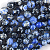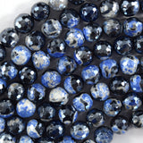 Mystic titanium faceted blue black agate round beads. This strand is 15" long, about 6mm, 8mm, 10mm in diameter.