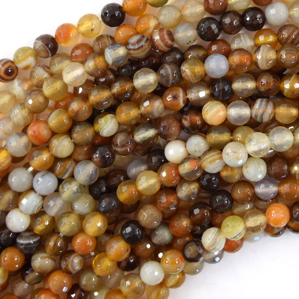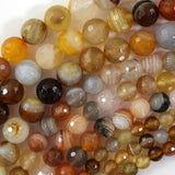 Natural Faceted Botswana Agate Round Beads Gemstone 15" Strand 6mm 8mm 10mm S2