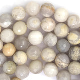 Natural faceted cream crazy lace agate round beads. This strand is 15" long, about 6mm 8mm 10mm in diameter.