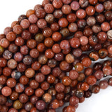 Natural Faceted Red Brown Portuguese Agate Round Beads 15" Strand 6mm 8mm 10mm