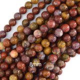 Natural Red Brown Portuguese Agate Round Beads Gemstone 15" Strand 8mm 10mm