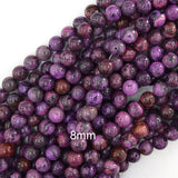 Purple crazy lace agate round beads. This strand is 15.5" long, about 4mm, 6mm, 8mm, 10mm in diameter.