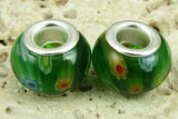 You are buying 2 lampwork glass beads with silver plated core. The beads measure about 13x9mm with a 4.5mm hole. They will fit Pandora, Chamilia, Troll and Biagi bracelets and necklaces.