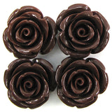 24mm synthetic coral carved rose flower beads 15" strand brown 15 pieces