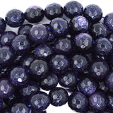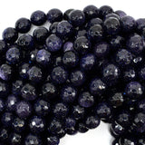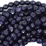 Faceted Blue Goldstone Round Beads 14" Strand Sandstone 4mm 6mm 8mm 10mm 12mm