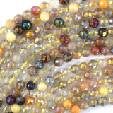 Mystic Titanium Natural Faceted Rutilated Quartz Round Beads 15" 6mm 8mm 10mm