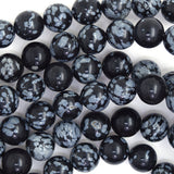Natural Black Snowflake Obsidian Round Beads 15" Strand 4mm 6mm 8mm 10mm