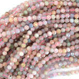 Natural Faceted Morganite Round Beads Gemstone 15.5" Strand Beryl 3mm 4mm