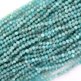 Natural faceted African green amazonite round beads. This strand is 15.5" long, about 3mm, 4mm in diameter.
