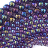 Mystic Titanium Natural Purple Amethyst Round Beads 15" Strand 6mm 8mm 10mm