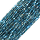 Natural Faceted Blue Apatite Round Beads 15.5" Strand 3mm 4mm