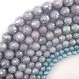 Mystic Titanium Faceted Blue Aquamarine Quartz Round Beads15" 6mm 8mm 10mm 12mm