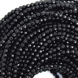 Faceted Black Onyx Round Beads Gemstone 15" Strand 2mm 3mm 4mm 6mm 8mm 10mm 12mm