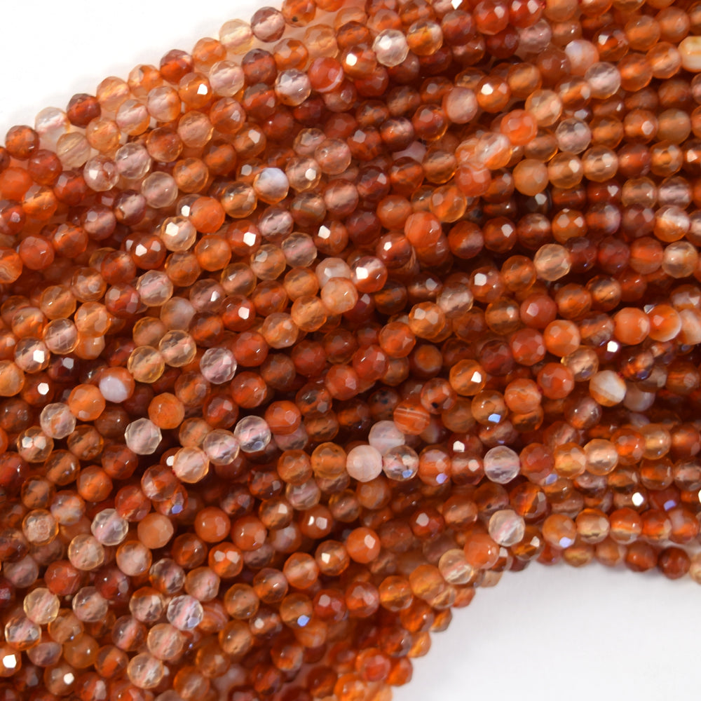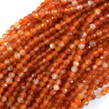 Natural Faceted Orange Red Carnelian Round Beads Gemstone 15" Strand 3mm 4mm 6mm