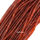 Red carnelian heishi disc beads. This strand is 15.5" long, about 2x4mm, 3x6mm.