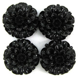 24mm synthetic coral carved chrysanthemum flower beads 15" strand 16 pcs black