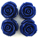 24mm synthetic coral carved rose flower beads 15" strand dark blue 15 pieces
