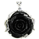 2 pieces 40mm synthetic coral carved rose flower pendant with silver plated bail black