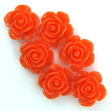 Synthetic coral carved rose beads with a hole drilled from top to bottom in the back. It measures about 15x8mm, 24 pieces.