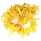 Mystic titanium yellow rock crystal quartz stick tooth beads. This strand is 15.5" long, about 20-30x4-6mm.
