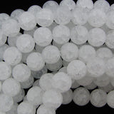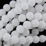 Matte White Cracked Crystal Round Beads Gemstone 15" Strand 6mm 12mm 14mm 15mm