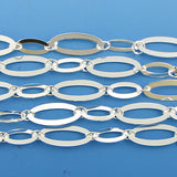 You are buying one foot of silver plated copper unfinished continuous oval chain. The size is about 24x10x0.2mm, 15x7x02mm. This item is sold by foot. We can cut according to your requirement.