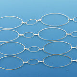 You are buying one foot of silver plated copper unfinished continuous oval chain. The sizes are about 40x20x1mm, 16x8x1mm and 8x3x1.5mm. This item is sold by foot. We can cut according to your requirement.