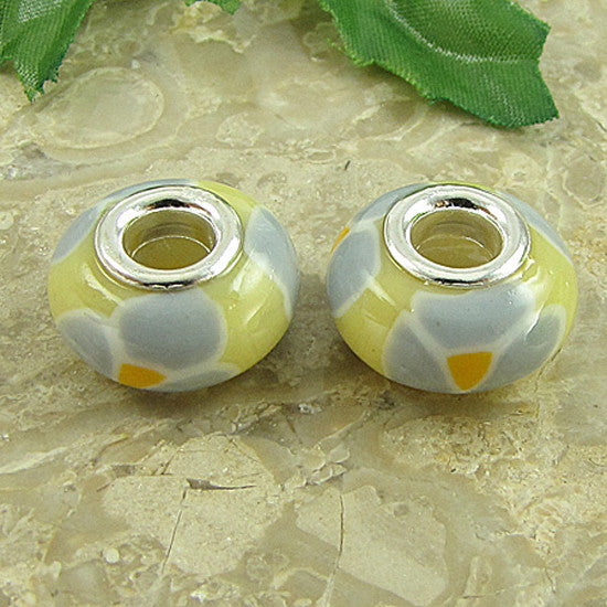 You are buying 2 handmade lampwork glass beads with sterling silver core. The beads measure about 14x11mm with a 4.5mm hole. They will fit Pandora, Chamilia, Troll and Biagi bracelets and necklaces.