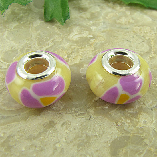 You are buying 2 handmade lampwork glass beads with sterling silver core. The beads measure about 14x11mm with a 4.5mm hole. They will fit Pandora, Chamilia, Troll and Biagi bracelets and necklaces.