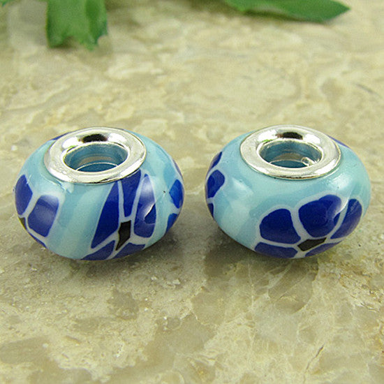 You are buying 2 handmade lampwork glass beads with sterling silver core. The beads measure about 14x11mm with a 4.5mm hole. They will fit Pandora, Chamilia, Troll and Biagi bracelets and necklaces.