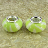 You are buying 2 handmade lampwork glass beads with sterling silver core. The beads measure about 14x11mm with a 4.5mm hole. They will fit Pandora, Chamilia, Troll and Biagi bracelets and necklaces.