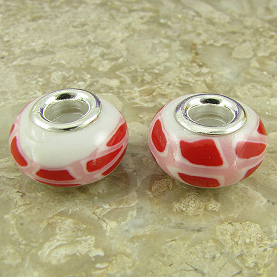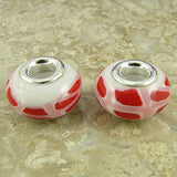 You are buying 2 handmade lampwork glass beads with sterling silver core. The beads measure about 14x11mm with a 4.5mm hole. They will fit Pandora, Chamilia, Troll and Biagi bracelets and necklaces.