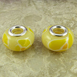 You are buying 2 handmade lampwork glass beads with sterling silver core. The beads measure about 14x11mm with a 4.5mm hole. They will fit Pandora, Chamilia, Troll and Biagi bracelets and necklaces.