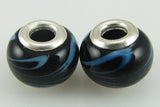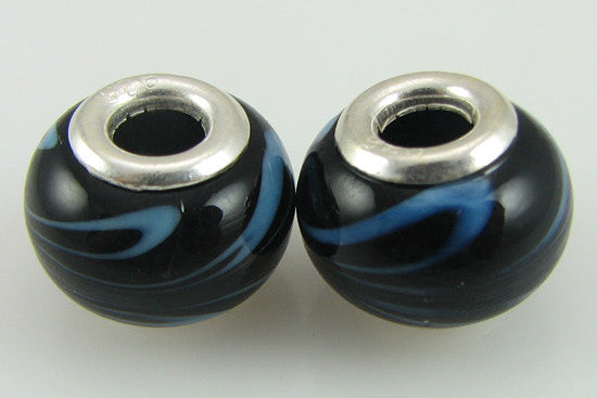 You are buying 2 handmade lampwork glass beads with sterling silver core. The beads measure about 14x11mm with a 4.5mm hole. They will fit Pandora, Chamilia, Troll and Biagi bracelets and necklaces.
