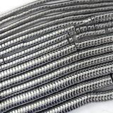 Silver hematite heishi disc beads. The strand is 15.5" long, about 2x3mm, 2x4mm, 2x6mm, 2x8mm.