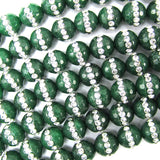 8mm faceted emerald green jade round beads inlaid with rhinestone 15" strand