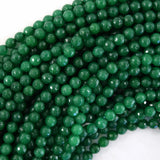 Faceted Emerald Green Jade Round Beads 15" Strand 3mm 4mm 6mm 8mm 10mm 12mm