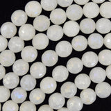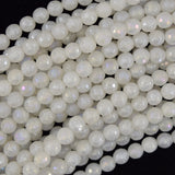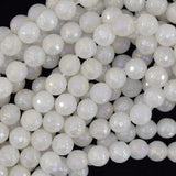 Mystic titanium faceted white jade round beads. This strand is 15.5" long, about 6mm, 8mm, 10mm in diameter.