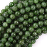 Natural green Canadian jade round beads. This strand is 15" long, about 6mm, 8mm, 9.5mm in diameter.