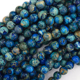 Dark blue sea sediment imperial jasper round beads. This strand is 15" long, about 6mm, 8mm,10mm in diameter.