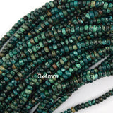 Green sea sediment jasper rondelle button beads. This strand is 15" long, about 3x4mm, 4x6mm, 5x8mm.