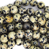 Natural dalmatian jasper round beads. This strand is 15" long, about 4mm 6mm 8mm 10mm 12mm in diameter.