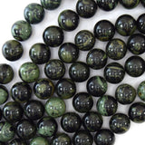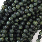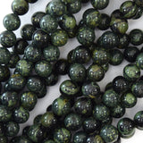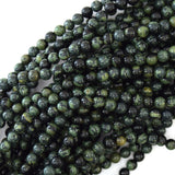 Natural green kambaba jasper round beads. This strand is 15" long, about 4mm, 6mm, 8mm, 10mm, 12mm in diameter.