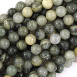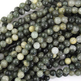 Natural green line jasper round beads. This strand is 15" long, about 6mm, 8mm, 10mm in diameter.